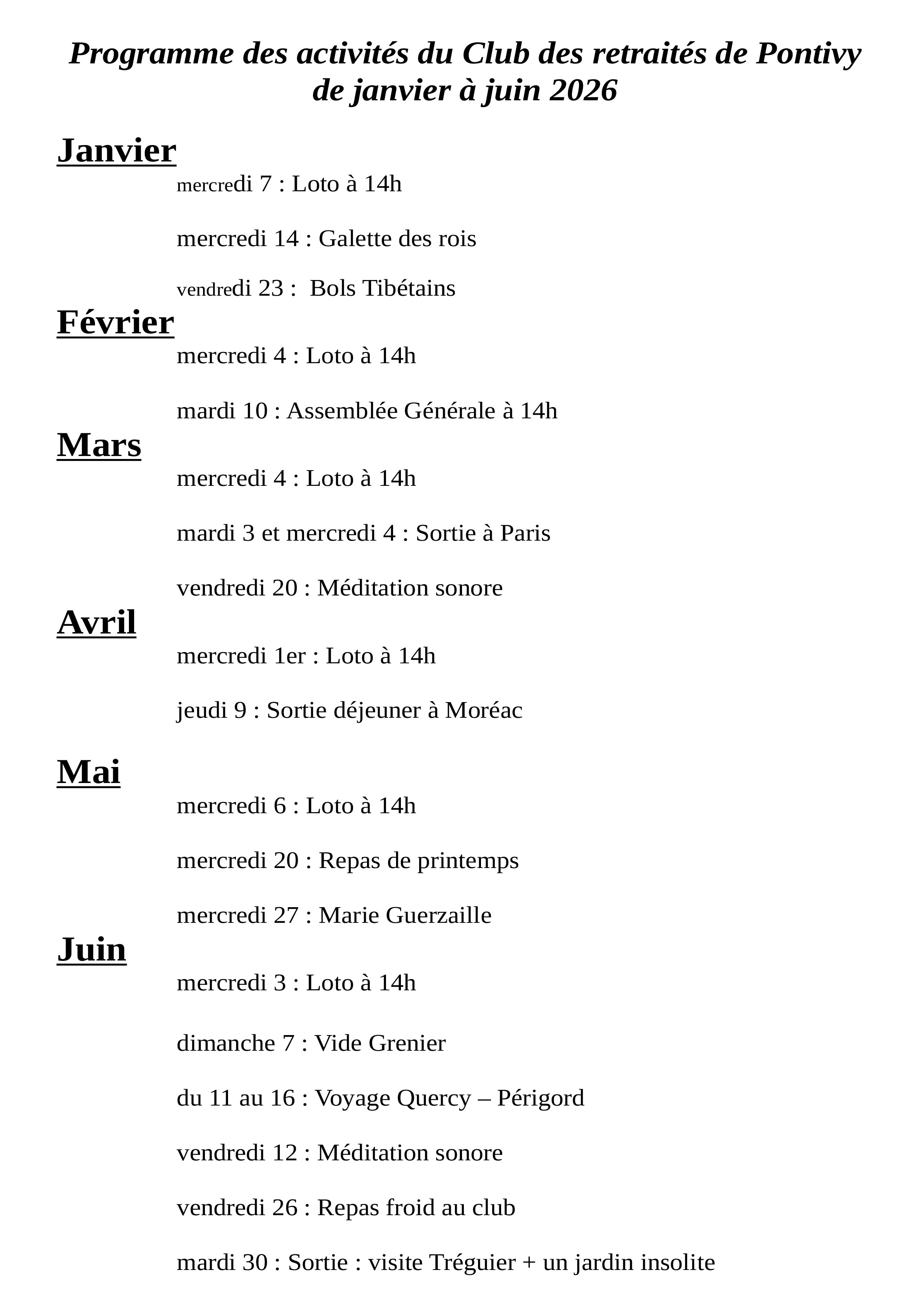 Programmme d activites du club des retraites de janvier a juin 2026